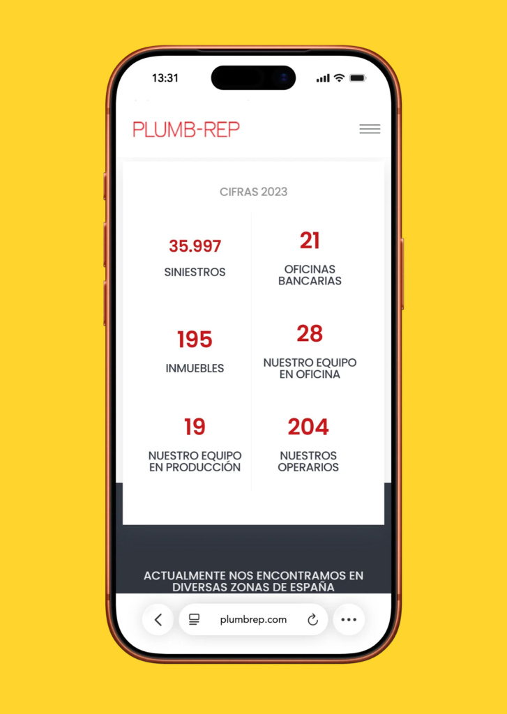 Plumb REP es un grupo empresarial con más de 30 años gestionando la asistencia y reparación de siniestros del hogar para las principales aseguradoras y entidades bancarias de España. Operan en Murcia, Alicante, Palma de Mallorca e Ibiza, con más de 35.000 siniestros gestionados en 2023 y una red de 204 técnicos de campo. Diseñé y desarrollé yo mismo —Sergio Soler, directamente— la web corporativa con foco en claridad, accesibilidad y confianza hacia aseguradoras, bancos y particulares.